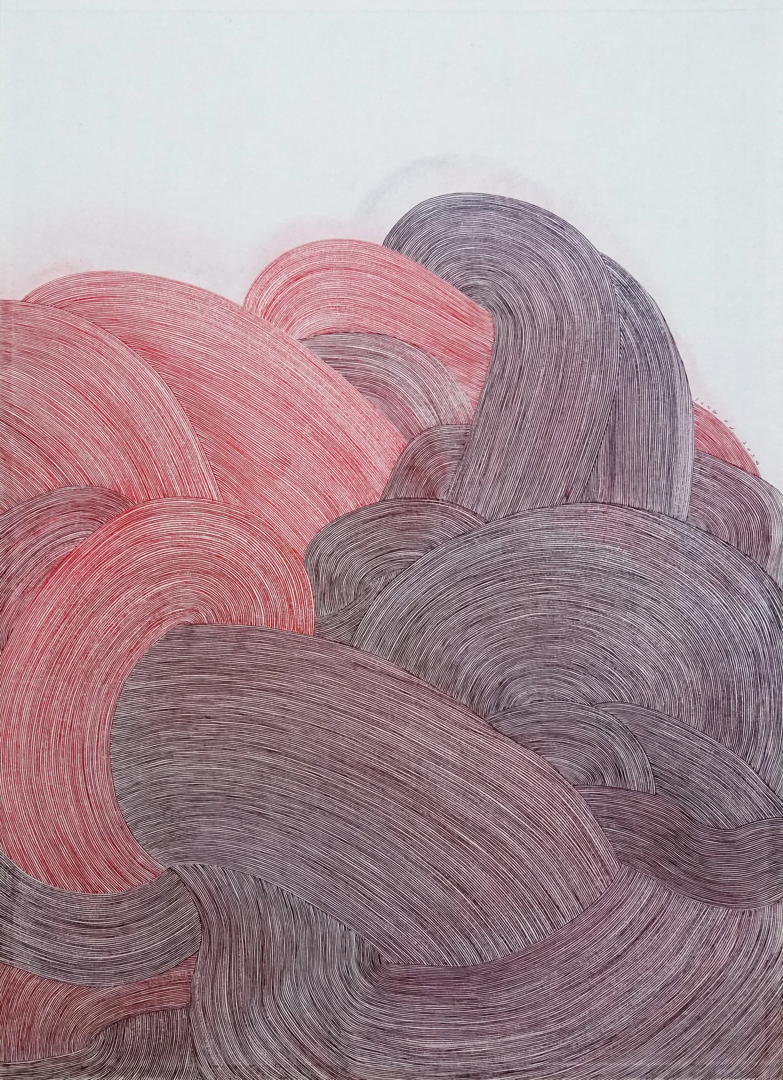 Marie-Agnès Gachet Mauroz, feu d’un ciel, technique mixte sur papier, 31 × 38 cm