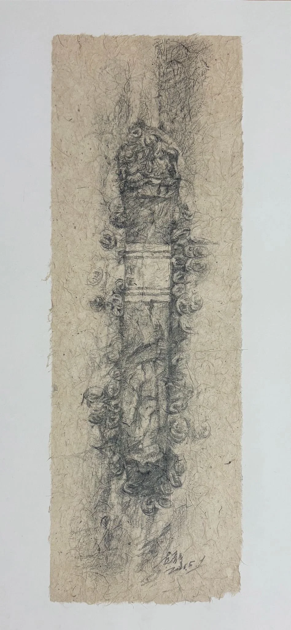 Kejing Song, Couplage – Le cigare, 2015, Crayon sur papier mûrier, 44 x 21 cm