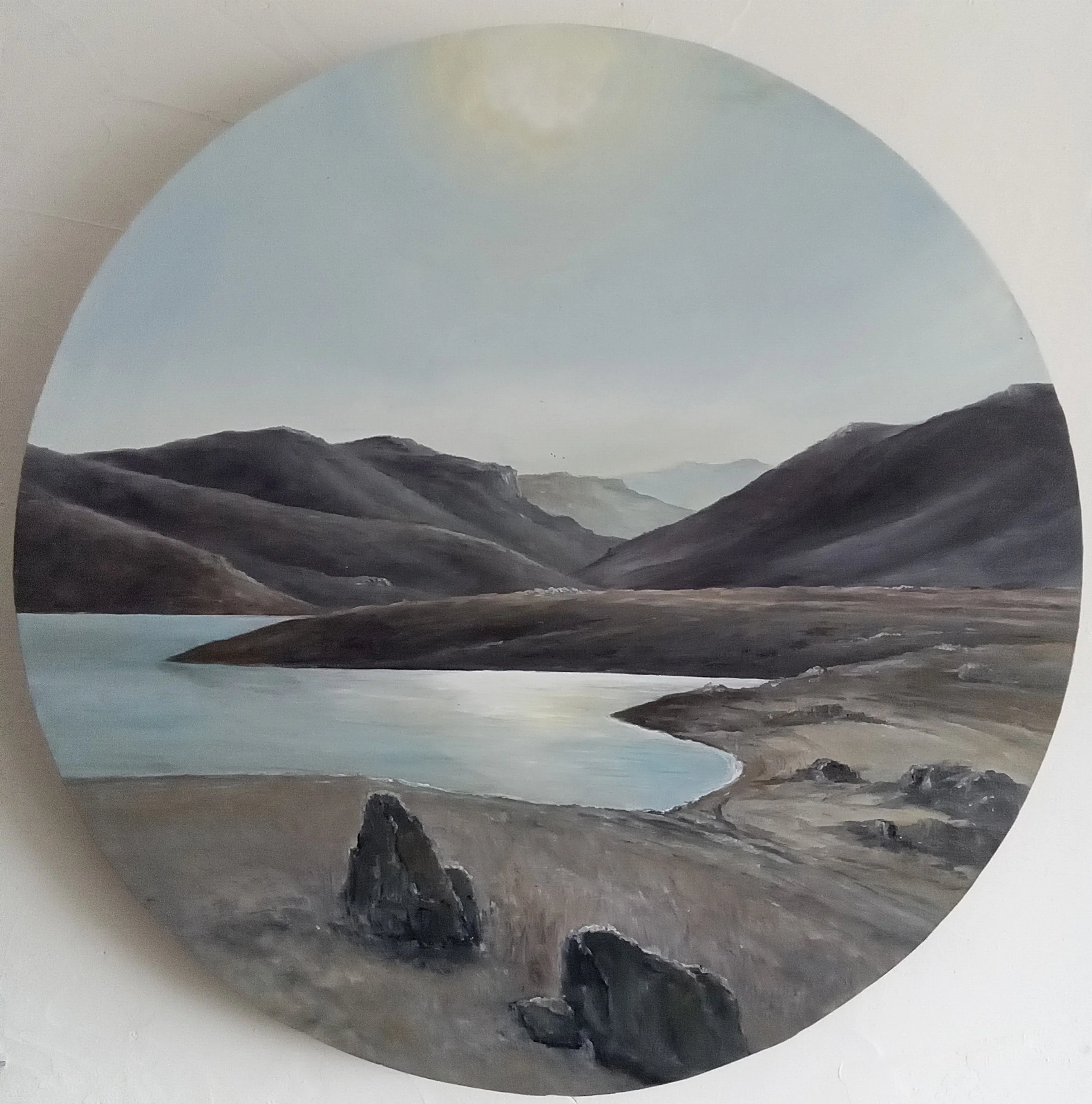 Numa Droz, Éblouissement, Huile sur bois, 2025, diamètre 40cm
